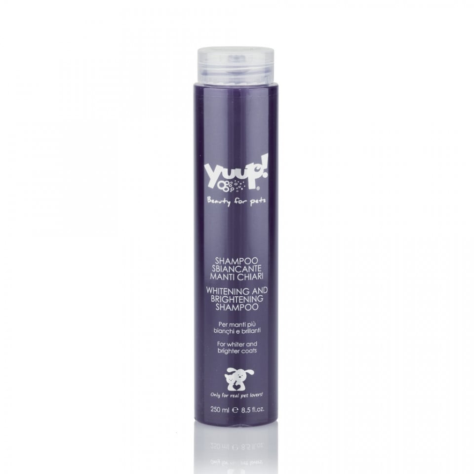 Sampon cu efect de albire, special conceput pentru blana alba, datorita unui pigment specific care neutralizeaza culoarea ingalbenita a parului inca de la prima aplicare